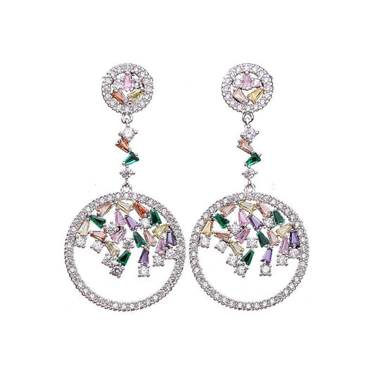 Colorful Zircon Circle Sweet Fashion Stud Earrings Wedding Dress Long Earrings for Women