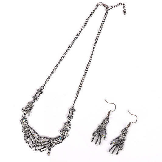Halloween Skeleton Hand Bones Necklace Earrings Set