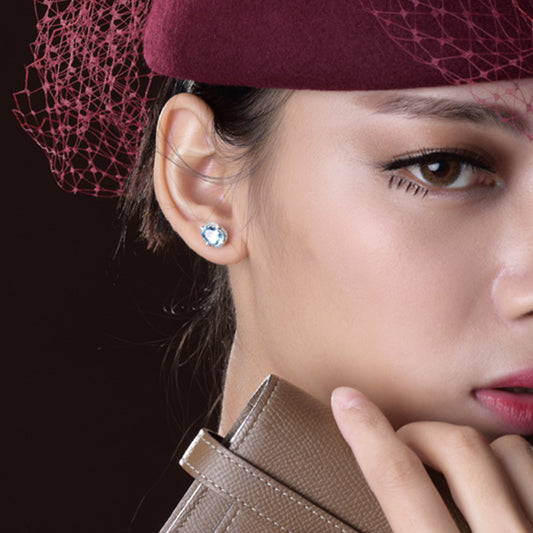 Four Prong Aquamarine Crystal Gemstone Earrings