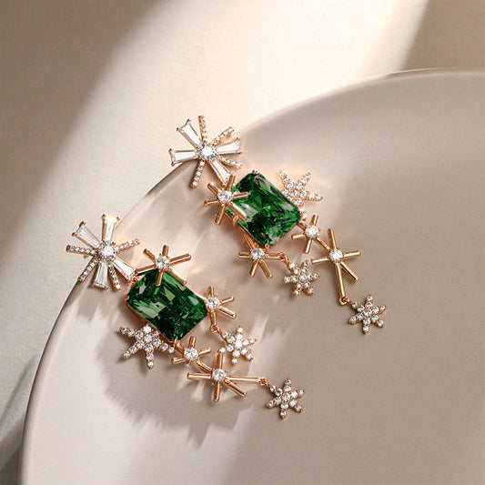 Imitation Emerald Micro-encrusted Zirconium Earrings