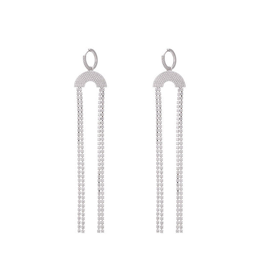Brilliant Inlaid Zirconia Elegance Long Earrings