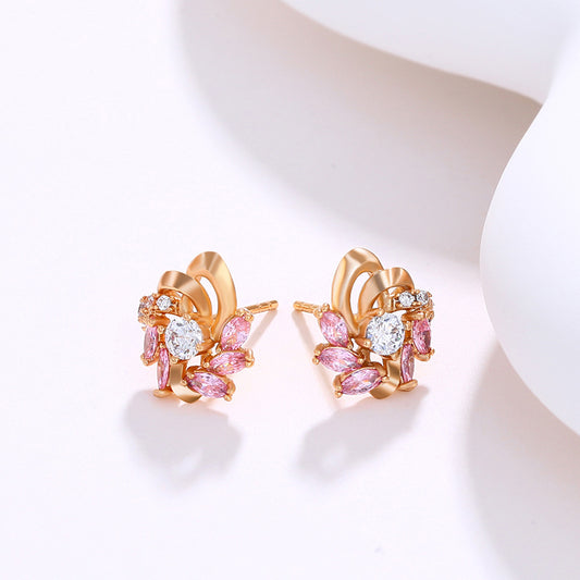 Exquisite Colored Zircon Flower Stud Earrings for Women
