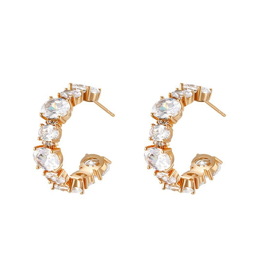 Vintage C-shaped Zircon Hoop Earrings