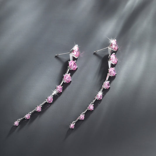 Cute Full Stones D Shape Heart & Bow Tassel Earrings