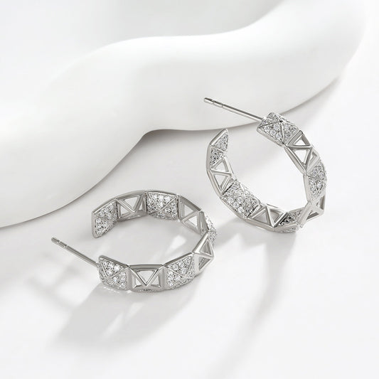 French Geometric Square Snowflake Zircon Earrings for Women