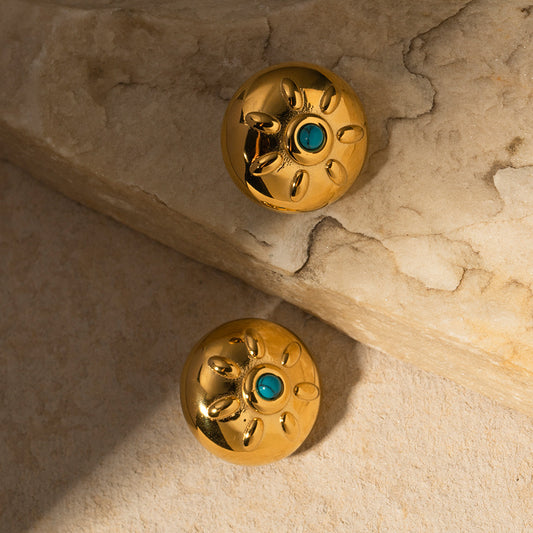 Gold Stainless Steel Turquoise Stud Earrings