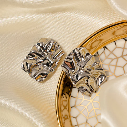 Titanium Steel Stainless Steel Square Pleated Earrings