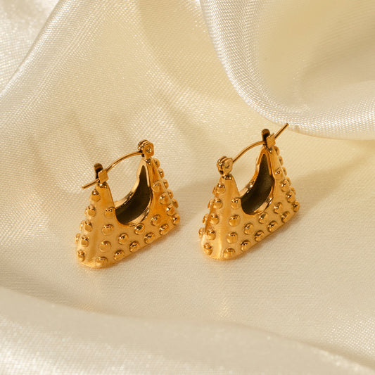 Embossed Geometric Stainless Steel Gold Plated Earrings