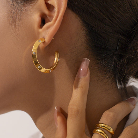 Oval U-shaped Earrings Titanium Steel Gold Earrings
