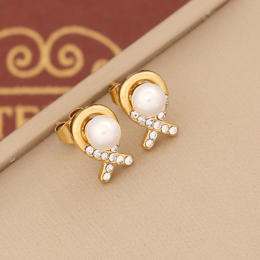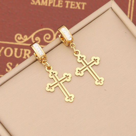 Titanium Steel Zircon Water Drop Pendant Earrings