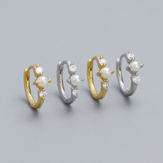 Minimalist S925 Silver Pearl Set Circle Earrings