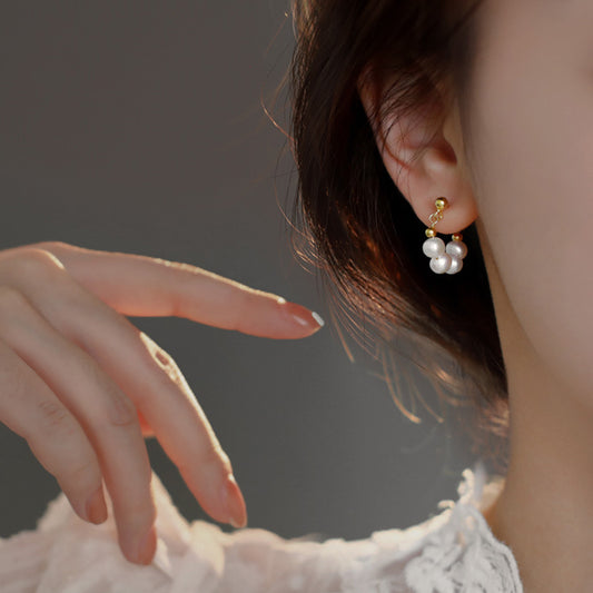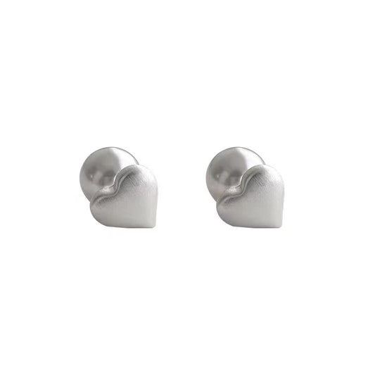 Metal Pearl Love Stud Earrings