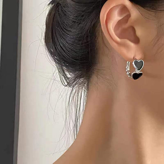 Spades Sweetheart Cold Wind Silver Needle Earrings