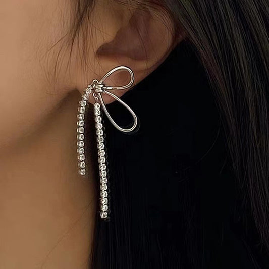 Long Tassel Rhinestone Drop Earrings