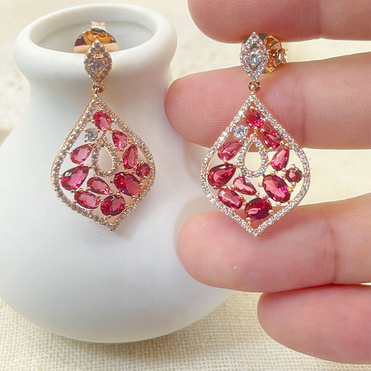 Pear Shaped Water Drop Shaped Pink Zircon Earrings