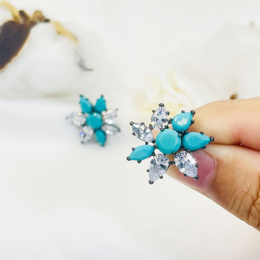 Turquoise Flower Shape Inlaid Light Blue Earrings