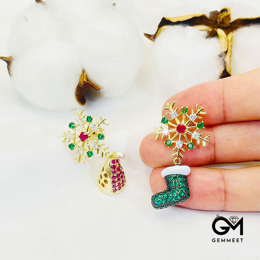 Christmas Gift S925 Silver Needle Snowflake Boots Hat Colorful Zircon Earrings