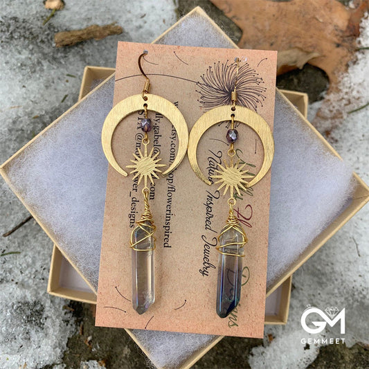 Bohemian Sun and Moon Quartz Earrings