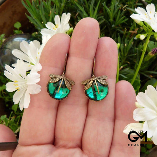 Vintage Green Dragonfly Crystal Earrings