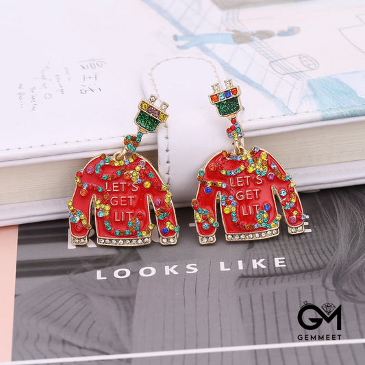 Christmas Earrings Personality Clothes Modeling Drop Oil Diamond Earrings Christmas Color Zircon Earrings