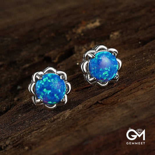 925 Silver Four Claw Opal Luxury Earrings