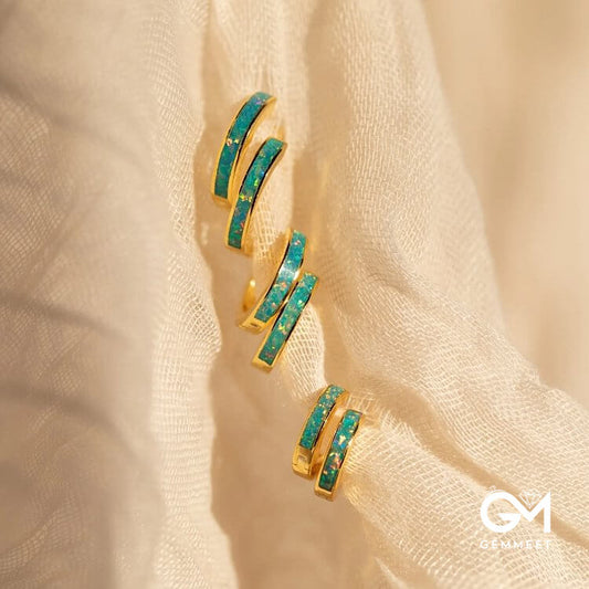 Opal Inlay Huggie Earrings