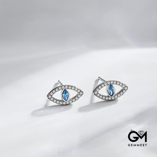 S925 Sterling Silver Devil's Eye White Blue Zircon Earrings