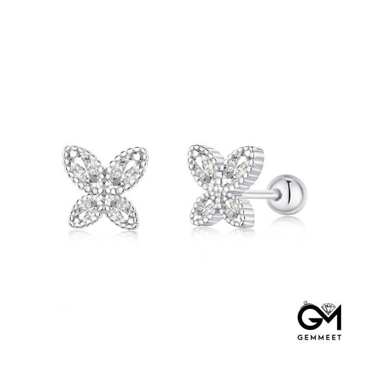 S925 Sterling Silver Butterfly White Zircon Earrings