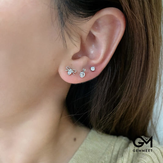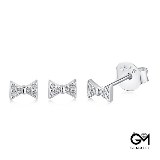 S925 Sterling Silver Delicate Round Bow Set Earrings