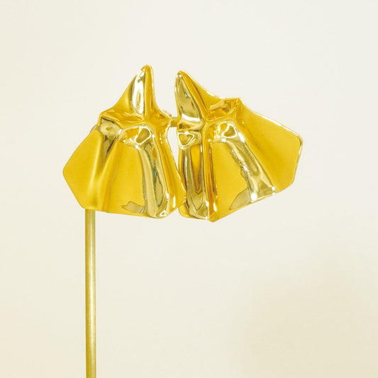 Geometric Distortion Wavy Textures Gold Stud Earrings