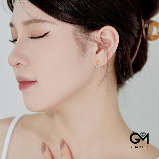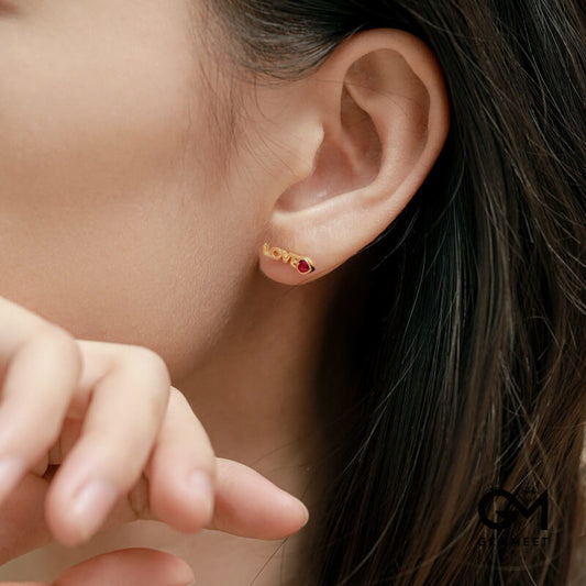 S925 Sterling Silver Heart Rose Zircon LOVE Earrings