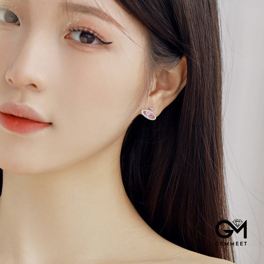 S925 Sterling Silver Pink Horseeye Zircon Earrings