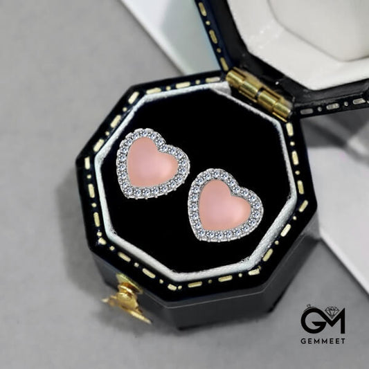 S925 Sterling Silver Love Pink Agate Earrings