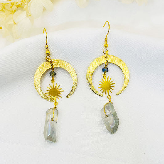 S925 Sterling Silver Yellow Zircon Sun Earrings