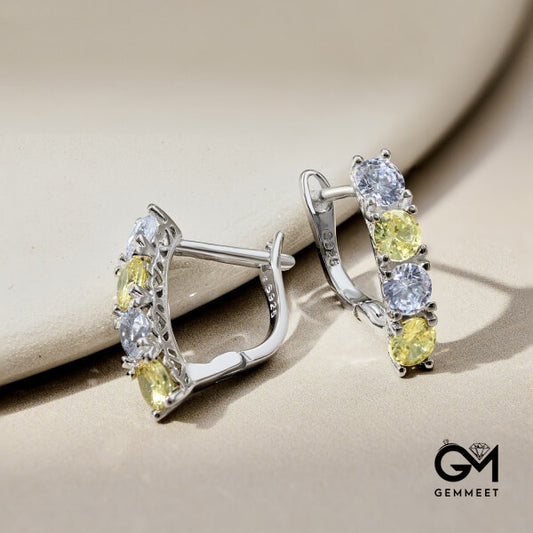 S925 Sterling Silver White Yellow Round Zircon Earrings