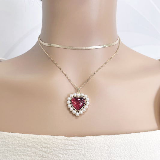 Resin Love Imitation Pearl Inlaid Necklace