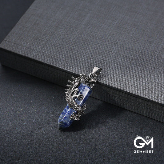Coiling Dragon Hexagon Column Crystal Pendant Necklace