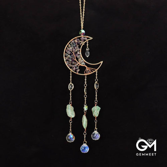 Crystal Gravel Moon Sun Catcher Wind Chimes