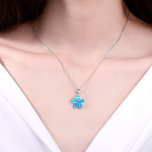White Gold Flower Shape Blue Opal Pendants Chains