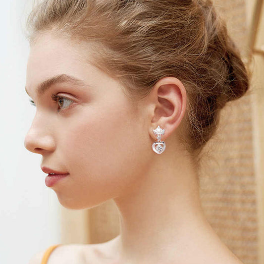 White Gold Crown Beating Heart Hollow Drop Earrings