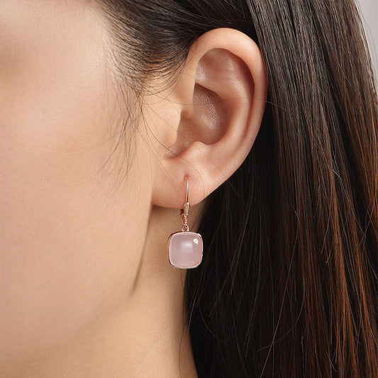 Rose Gold Square Pink Gem Dangle Earrings