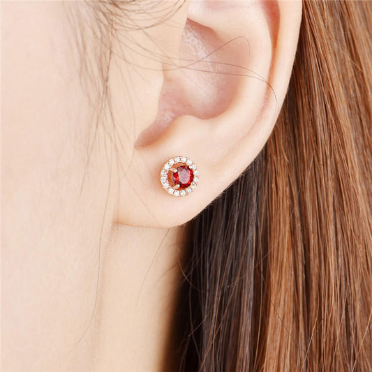 Rose Gold Ruby Gem Full Stones Circle Stud Earrings