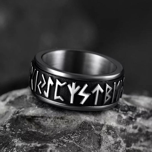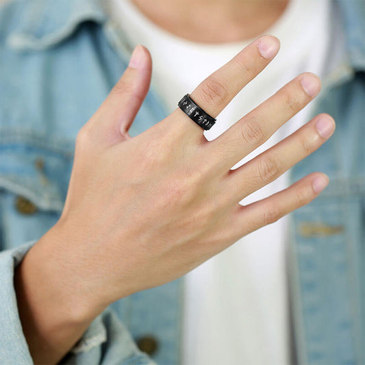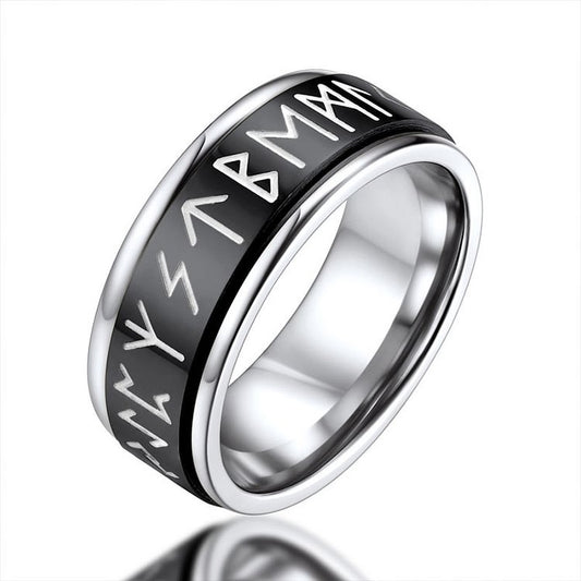 Release Stress Viking Rune Iron Chain Turnable Ring