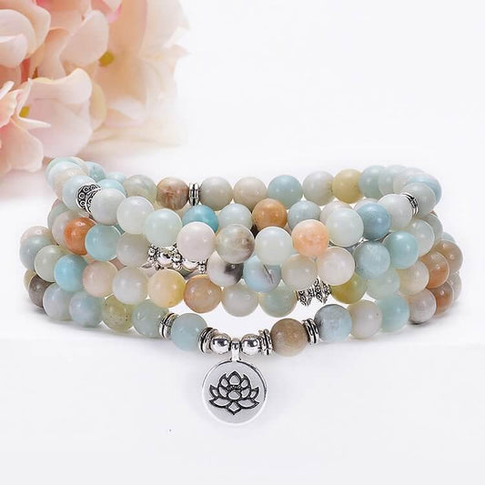 Moonstone Lotus Tree Of Life OM Buddha Symbol Mala