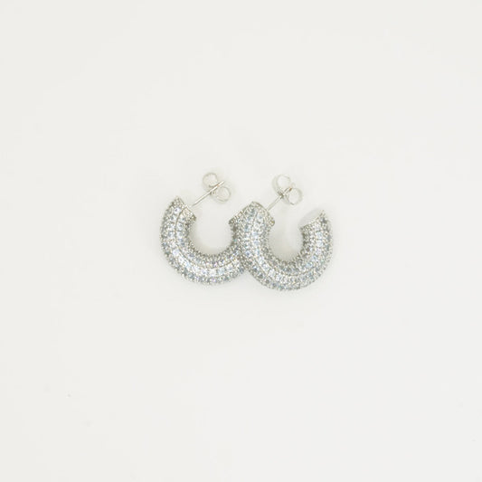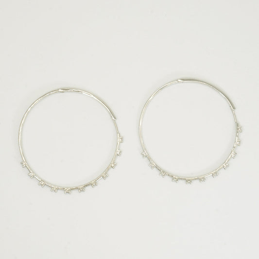 White Gold Plating Prong Set Stones Big Hoop Earrings
