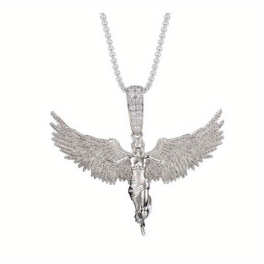 Iced-Out Angel Pendant Hip-Hop Punk Style Necklace