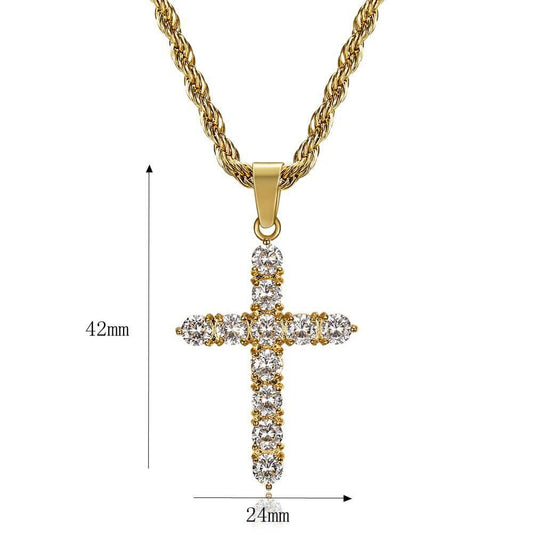 HIPHOP Jewelry Vacuum Gold-plated Zircon Cross Pendant
