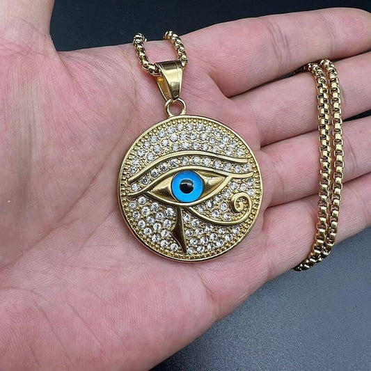 Eye of Horus Jewelry Titanium Steel Gold-plated Blue Eye Medal Pendant