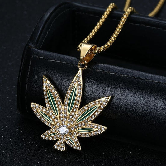 HIPHOP Jewelry Epoxy Gold-plated Zircon Maple Leaf Lovers Pendant