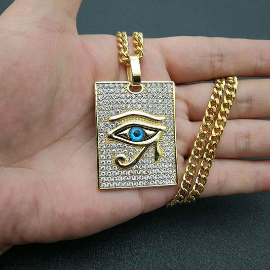 HIPHOP Jewelry Gold Plated Zircon Eye of Horus Pendant